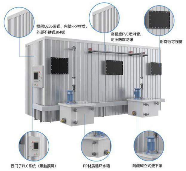 1、预处理单元:除尘、调温、增湿、pH 调节(如预洗塔)